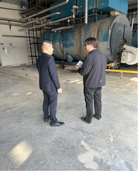 3月8日下午,集团总经理李盛玺带队对公司安全生产工作开展例行检查。先后查看了制冷车间、收奶大厅、锅炉房等重点区域,现场听取各部门关于设备操作、维护保养、消防应急演练等情况介绍,并对消防器材进行抽检。